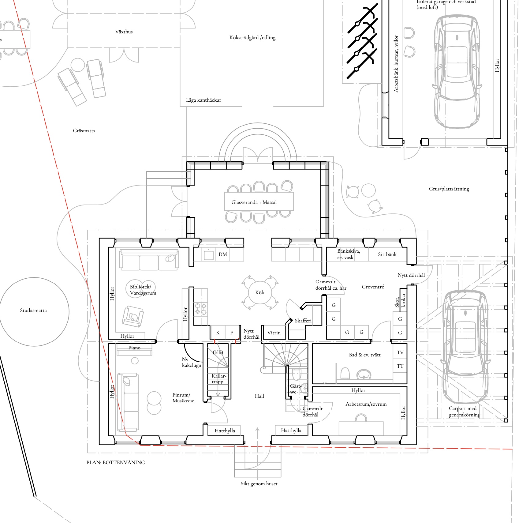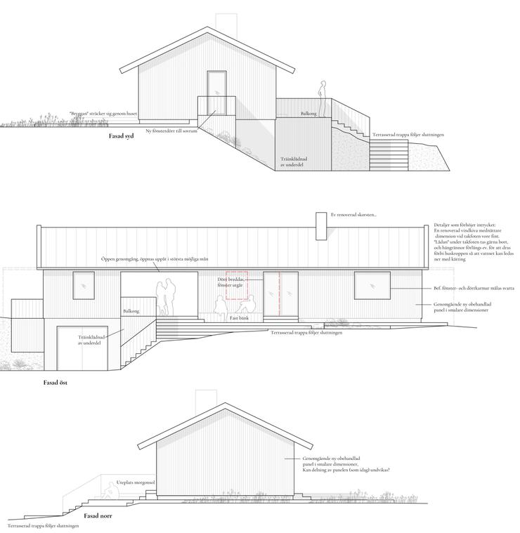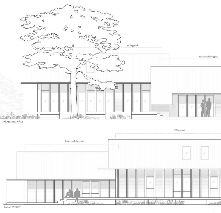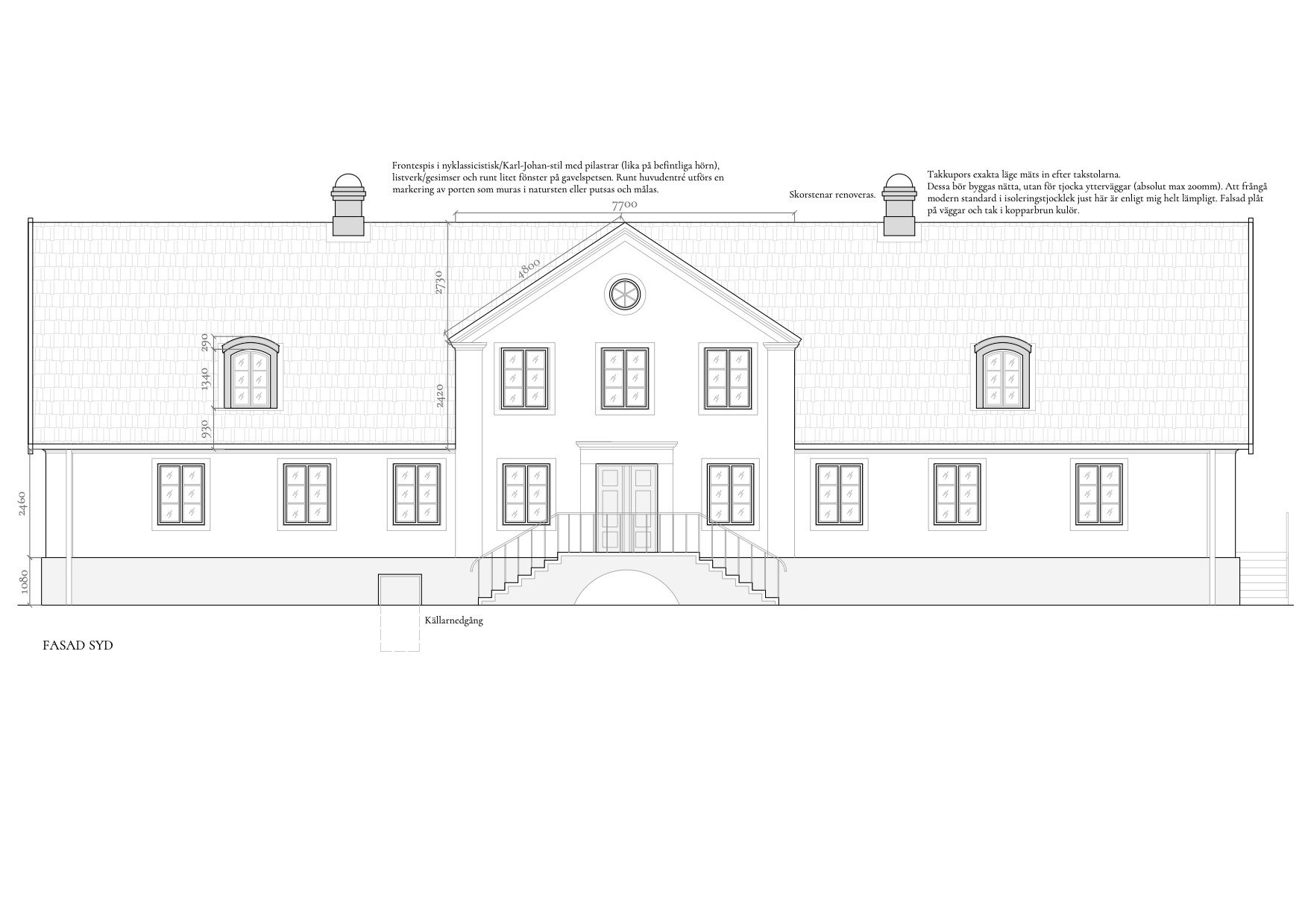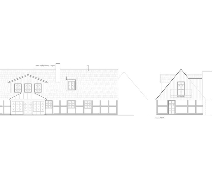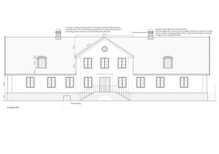 tillbyggnad till 40-tals hus på hästgård. Boytan fördubblas med nytt stort sovrum, tvättstuga, badrum/spa, lounge, bar, dubbelgarage och Utvändiga terrasser. bygganden utförs putsad med stora fönster/dörrpartier och träluckor, som på de äldre stallbyggnaderna.