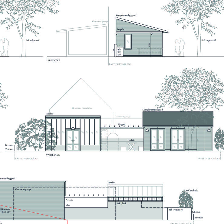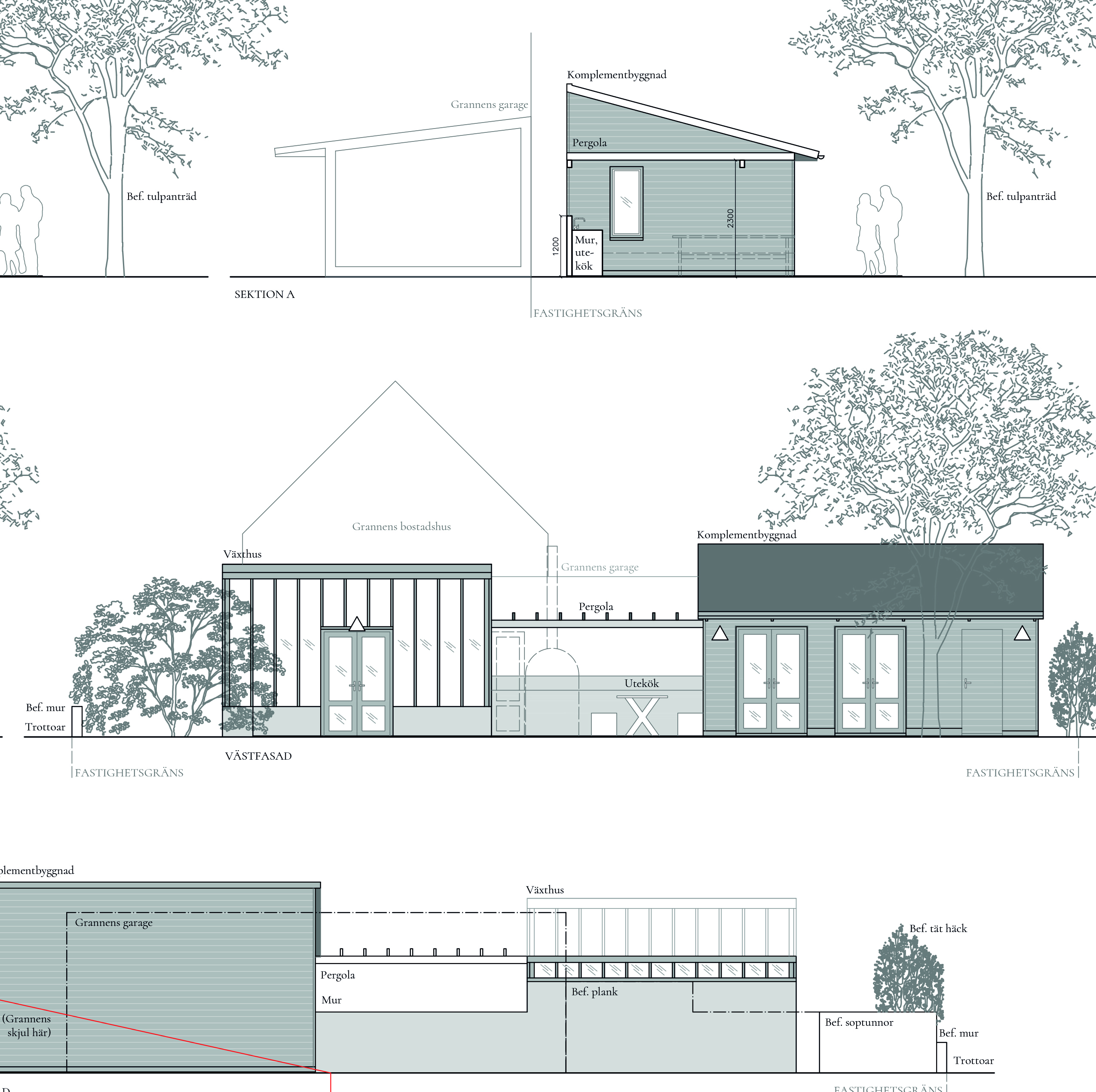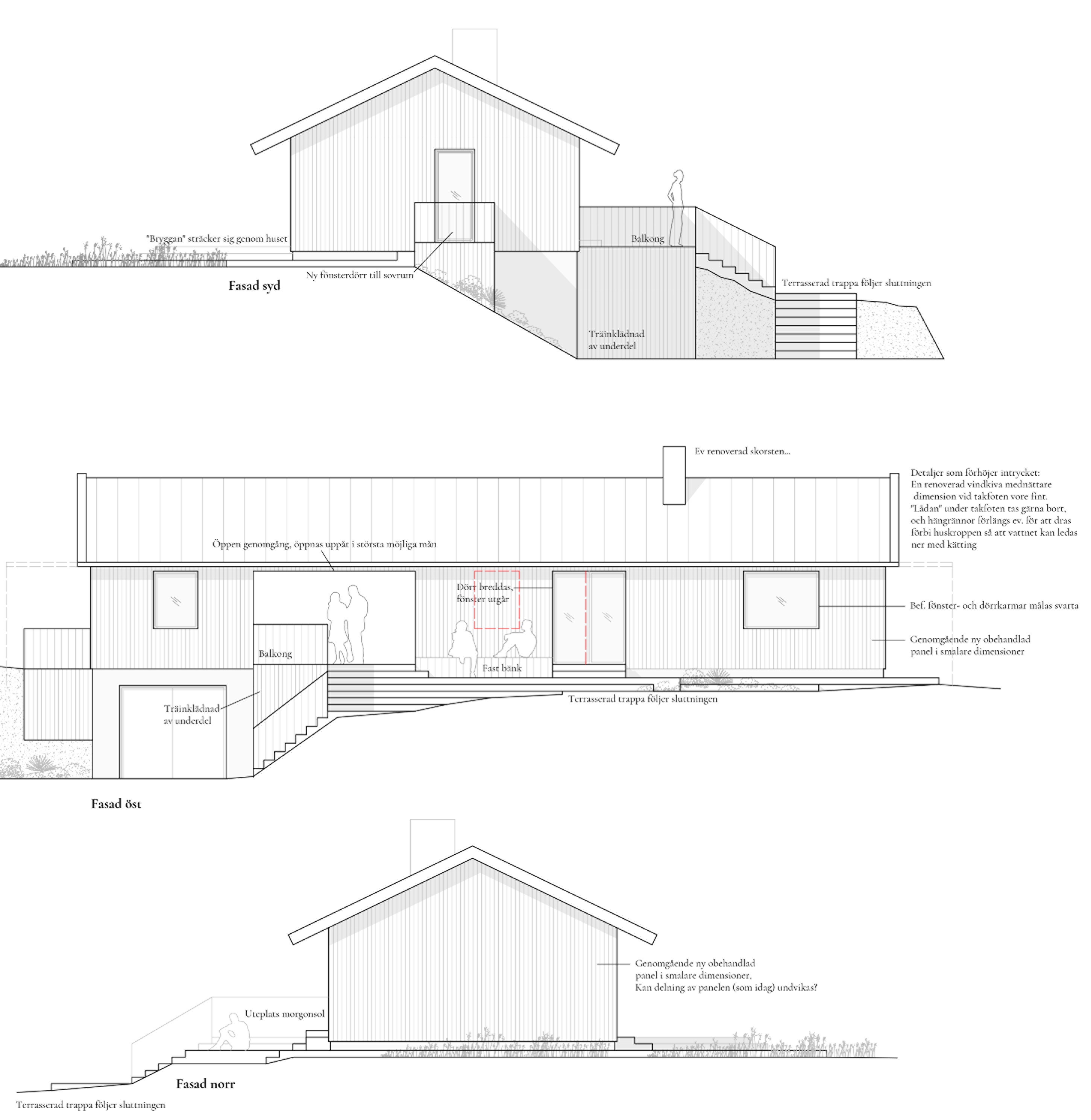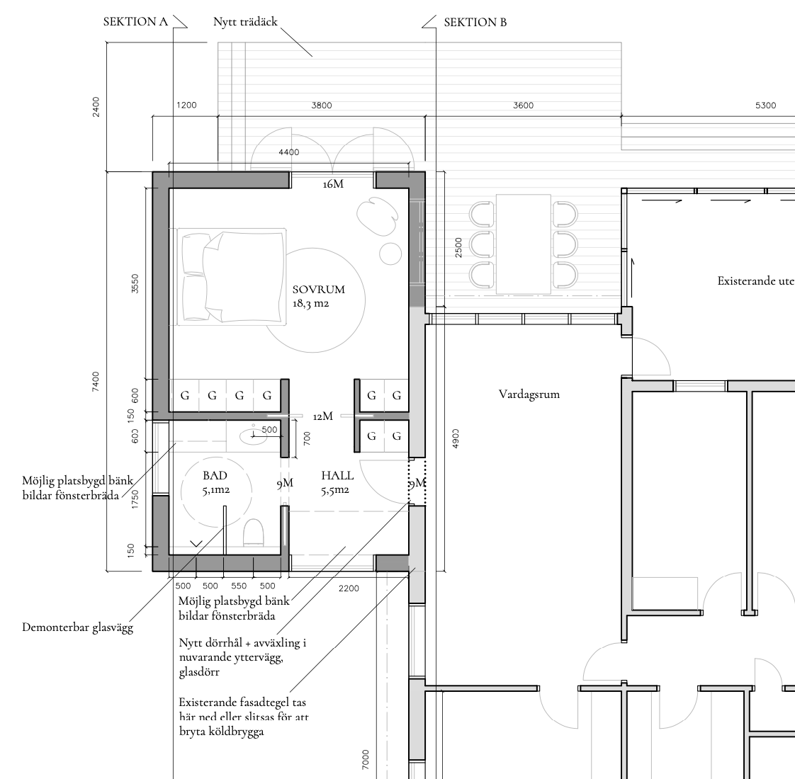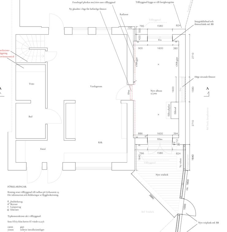 tillbyggnad till 40-tals hus på hästgård. Boytan fördubblas med nytt stort sovrum, tvättstuga, badrum/spa, lounge, bar, dubbelgarage och Utvändiga terrasser. bygganden utförs putsad med stora fönster/dörrpartier och träluckor, som på de äldre stallbyggnaderna.