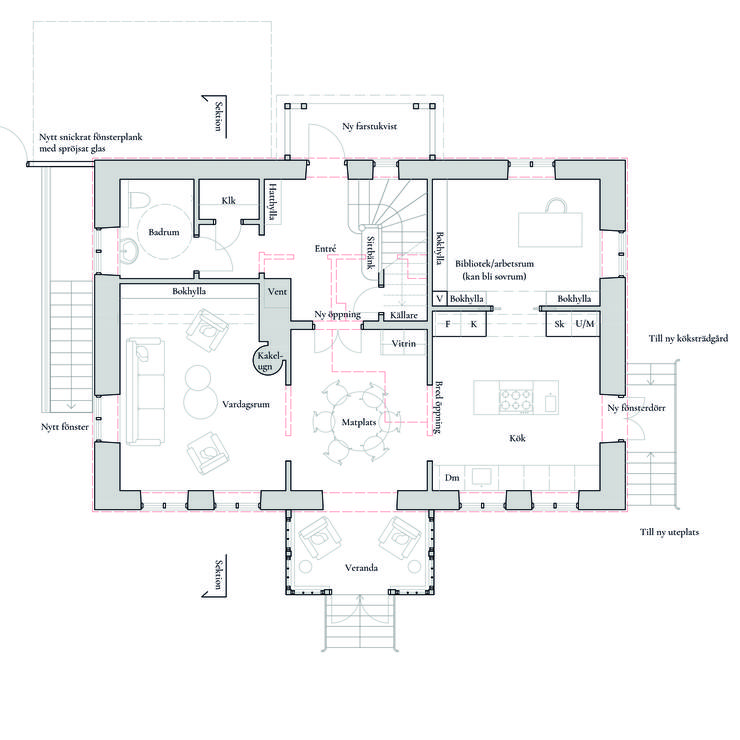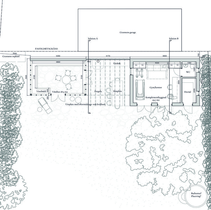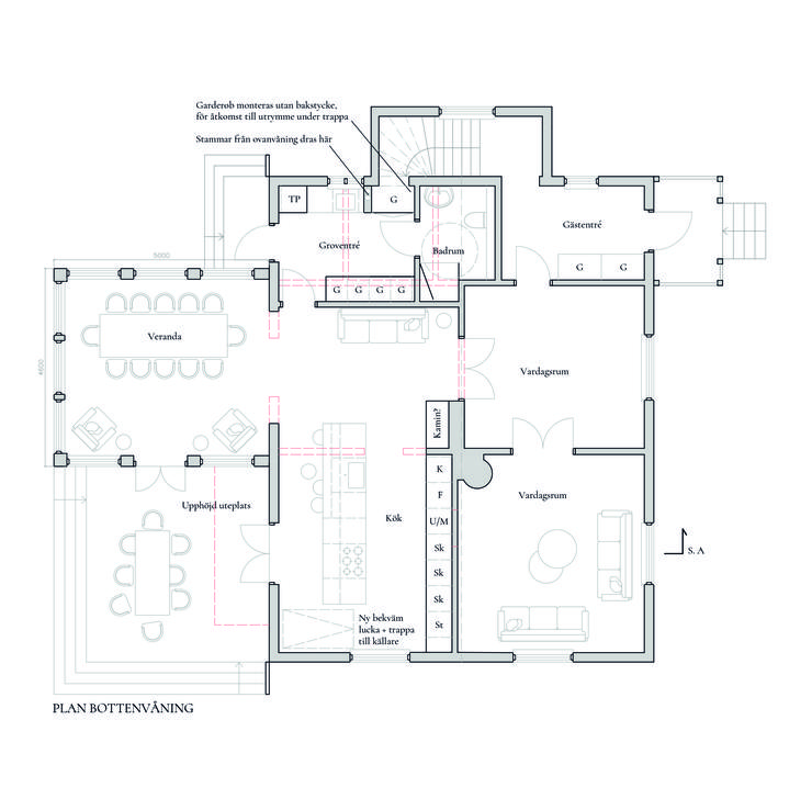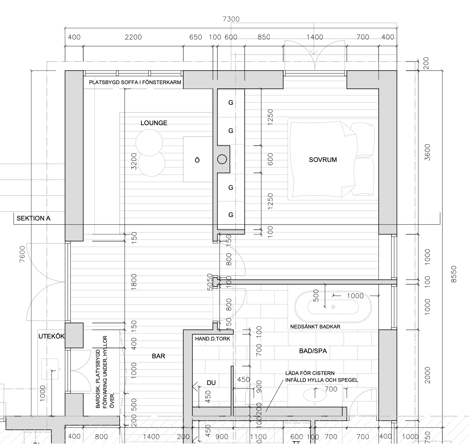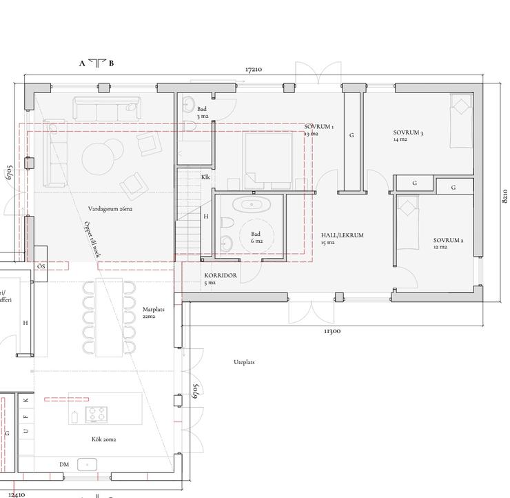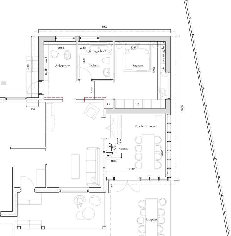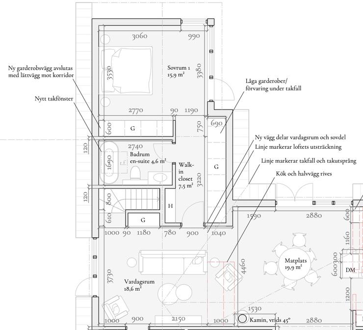 tillbyggnad till 40-tals hus på hästgård. Boytan fördubblas med nytt stort sovrum, tvättstuga, badrum/spa, lounge, bar, dubbelgarage och Utvändiga terrasser. bygganden utförs putsad med stora fönster/dörrpartier och träluckor, som på de äldre stallbyggnaderna.